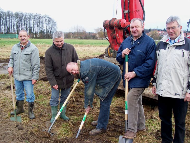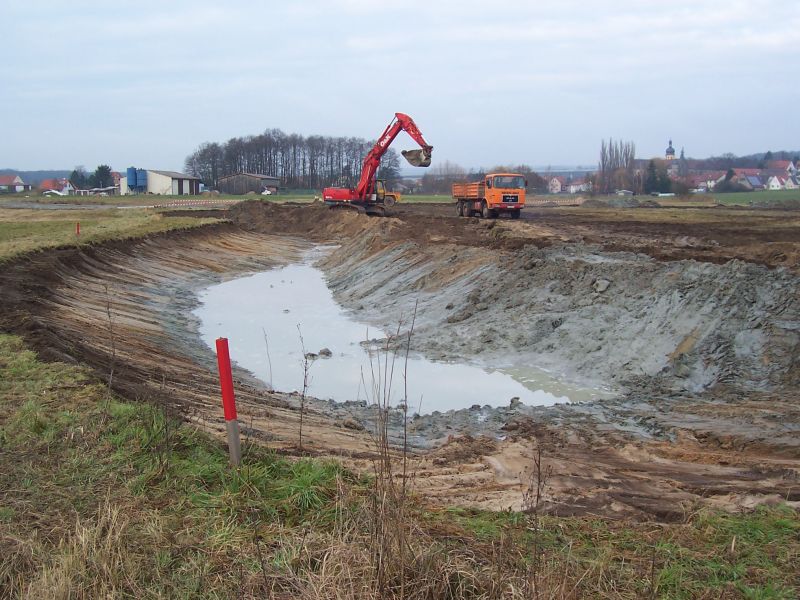 Großer Jubel bricht bei den Vereinsverantwortlichen nicht aus, eher das Gefühl der Erleichterung ist aus ihren Worten herauszuhören. Schließlich dauerte es sieben Jahre von den ersten Plänen bis die letzten Bagger ihre Schaufel anlegten. „Es war ein zähes Geschäft“, räumt Schriftführer Bruno Ort ein, ohne ins Detail zu gehen. Sieben Behörden und die Gemeinde Grettstadt waren beteiligt. Da gab es viele Einzelfragen zu klären – vom Verlauf einer Hochspannungsleitung bis zur Renaturierung des Erleinsbachs, deren Pläne zweimal geändert wurden. Letztere war eine Forderung der Unteren Naturschutzbehörde als Ausgleichsmaßnahme.