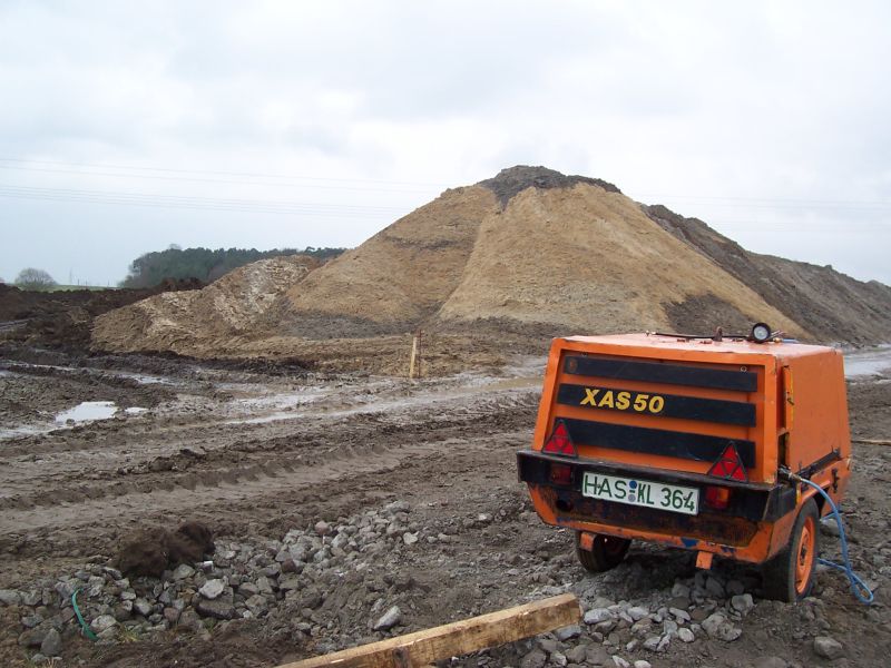 An die erst jüngst zu Ende gegangenen Bauarbeiten erinnern die riesigen Berge an Sand und Erde, die die Bagger aus der Wiese gegraben haben und jetzt neben der Straße lagern. Zwei Jahre dürfen sie laut Genehmigung des Landratsamtes dort noch liegen, dann müssen die 40 000 Kubikmeter abtransportiert sein. 5000 davon übernimmt die Gemeinde, um eine Stilllegungsfläche am Steinlöhlein aufzufüllen, wie Bürgermeisterin Epp unlängst im Gemeinderat bekannt gab. Den stark mit Sand versetzten Aushub übernimmt eine Baufirma, um damit bei ihren Projekten Kabelgräben im Boden abzudecken.