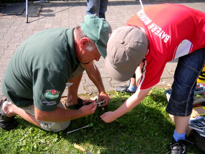 Nach der Begrüßung durch den Vorsitzenden Rainer Flessa wurden die Kinder ihren „Angelpaten“ zugeteilt. Besonders erfreulich war für die Vereinsleitung, dass sich auch acht Jungangler des Vereins als „Lehrmeister“ zur Verfügung stellten. Einigen Anglern war die Veranstaltung für die Ferienkinder sogar einen Tag Urlaub wert.